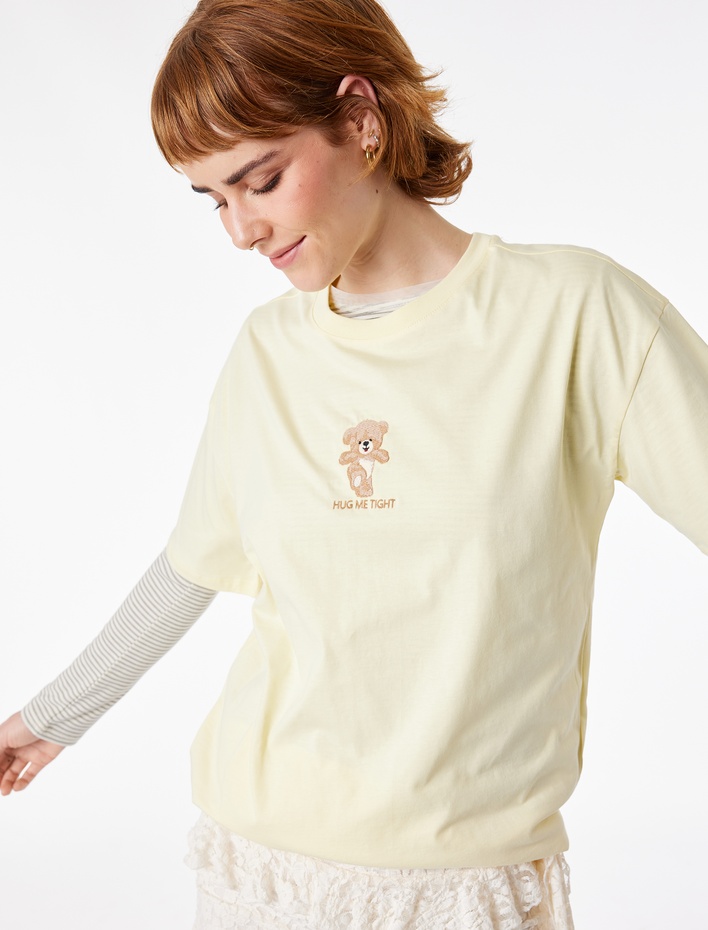 Rahat Kalıp Kısa Kollu Baskılı Bisiklet Yaka Pamuklu Ayıcıklı Tişört Sepete Ekle
