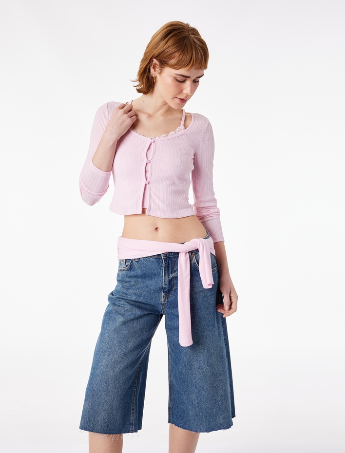 Slim Fit Uzun Kollu Düğmeli Atletli Bisiklet Yaka Kaşkorse Tişört Sepete Ekle