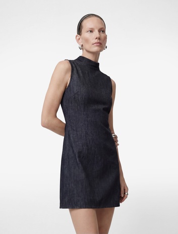 Dik Yaka Kolsuz Mini Denim Elbise Sepete Ekle