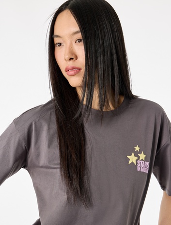 Rahat Kalıp Kısa Kollu Bisiklet Yaka Arkası Baskılı Pamuklu Tişört Sepete Ekle