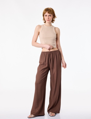 Viskon Crinkle Kumaş Rahat Kalıp Beli Bağcıklı Pantolon Sepete Ekle