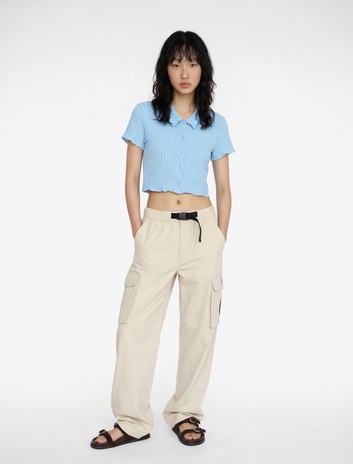 Klasik Yaka Düğmeli Bürümcük Dokulu Kısa Kollu Tişört Sepete Ekle