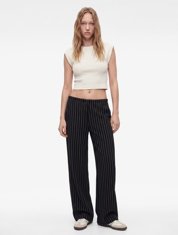 Rahat Kalıp Beli Bağcıklı Çizgili Bürümcük Kumaş Geniş Paça Pantolon Sepete Ekle