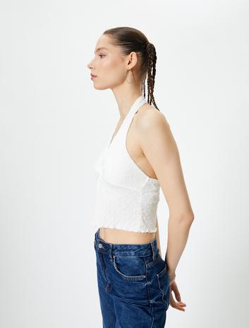 Crop Üst Sırt Dekolteli Boyundan Kalın Askılı Dokulu Derin V Yaka Bürümcük Sepete Ekle