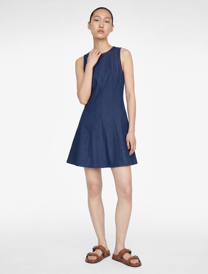 Kemer Detaylı Bisiklet Yaka Kolsuz Mini Kloş Elbise Sepete Ekle