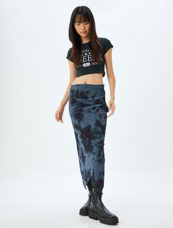 Midi Etek Tül Batik Görünümlü Drapeli Slim Fit