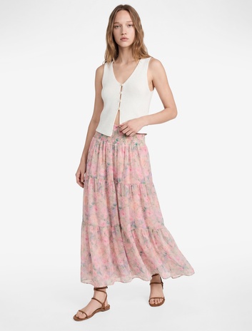 Çiçekli Beli Lastikli Viskon Uzun Etek Sepete Ekle