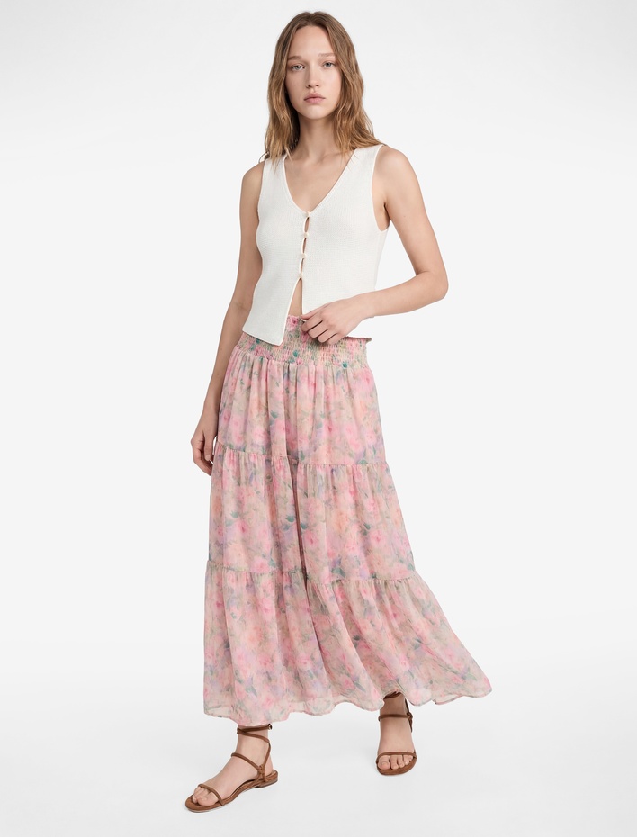 Gipeli Katlı Volanlı Çiçekli Uzun Etek Sepete Ekle