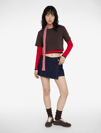Rahat Kalıp Kruvaze Mini Denim Şort Etek Sepete Ekle