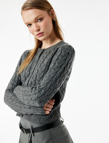 Düğmeli Bisiklet Yaka Uzun Kollu Saç Örgüsü Dokulu Triko Hırka Sepete Ekle