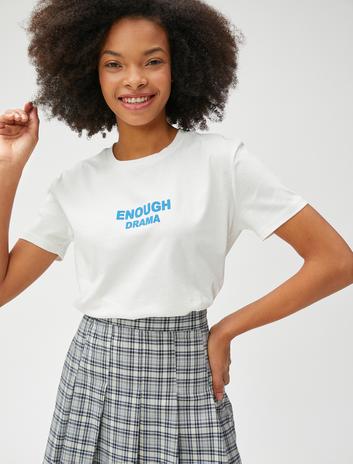 Baskılı Tişört Kısa Kollu Bisiklet Yaka Pamuklu