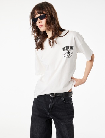 Rahat Kalıp Kısa Kollu Bisiklet Yaka Arkası Baskılı Tişört Sepete Ekle
