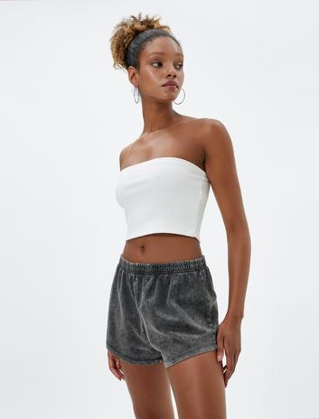 Yüksek Bel Şort Beli Lastikli Katlama Detaylı Pamuklu