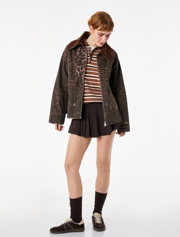 Rahat Kalıp Klasik Kadife Yaka Pamuklu Fermuarlı Cepli Leopar Ceket