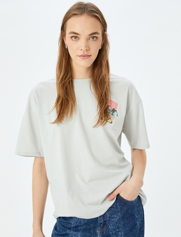 Oversize Tişört Baskılı Bisiklet Yaka Kısa Kollu Pamuklu Sepete Ekle