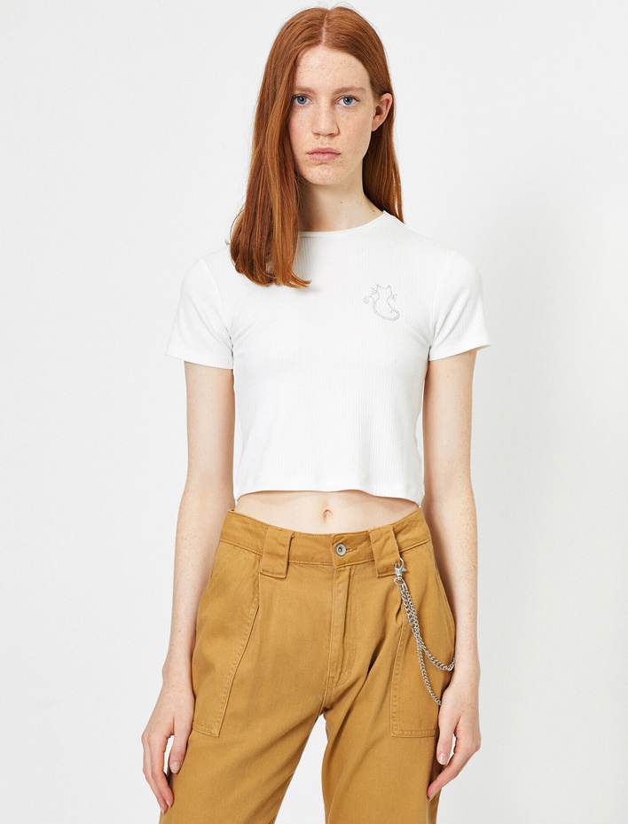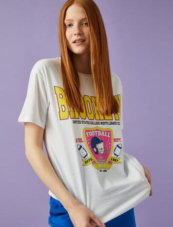 Bisiklet Yaka Kısa Kollu Yazılı Baskılı Tişört