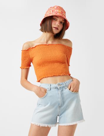Kısa Kollu Kayık Yaka Gipeli Tişört Sepete Ekle