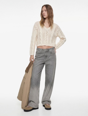 Ajurlu V Yaka Uzun Kollu Triko Kazak