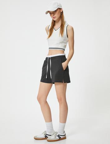 Çift Bel Detaylı Mini Şort Cepli Beli Bağlamalı Rahat Kalıp Pamuklu