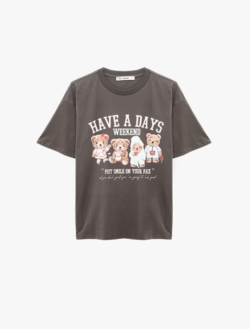 Kısa Kollu Bisiklet Yaka Ayıcık Baskılı Oversize Tişört Sepete Ekle