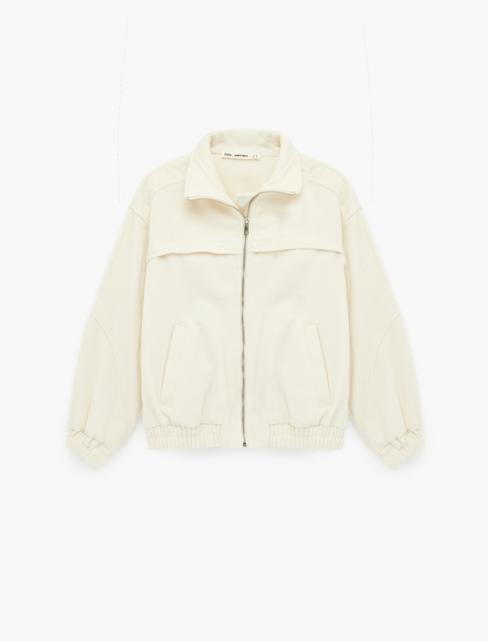 Cep Detaylı Koyun Yünü Karışımlı Fermuarlı Ribanalı Oversize Ceket Sepete Ekle
