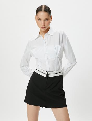Crop Gömlek Korse Detaylı Uzun Kollu Manşet Yaka