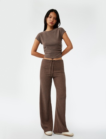 Beli Bağcıklı Geniş Paça Bürümcük Pantolon