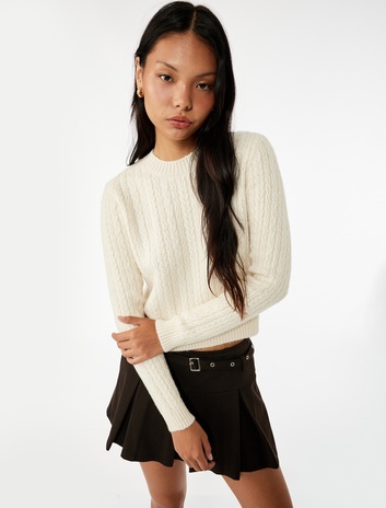 Saç Örgüsü Detaylı Uzun Kollu Bisiklet Yaka Triko Kazak