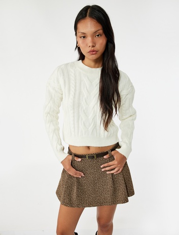 Uzun Kollu Bisiklet Yaka Saç Örgülü Triko Kazak