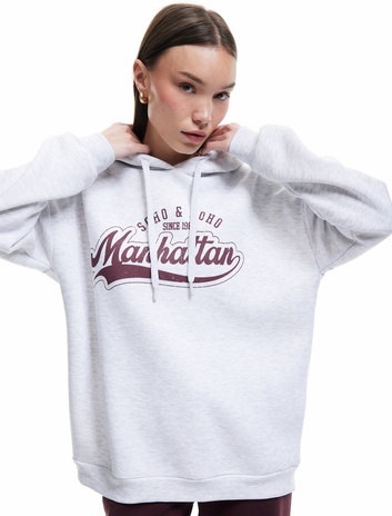 Şardonlu Kapüşonlu Baskılı Oversize Sweatshirt