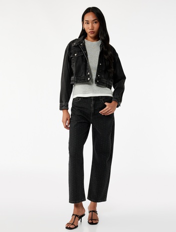 Taş Detaylı Straight Fit Düz Paça Jean Pantolon - Straight Jeans