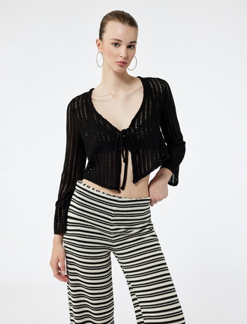 Pamuklu Bağlamalı Uzun Kollu Hırka