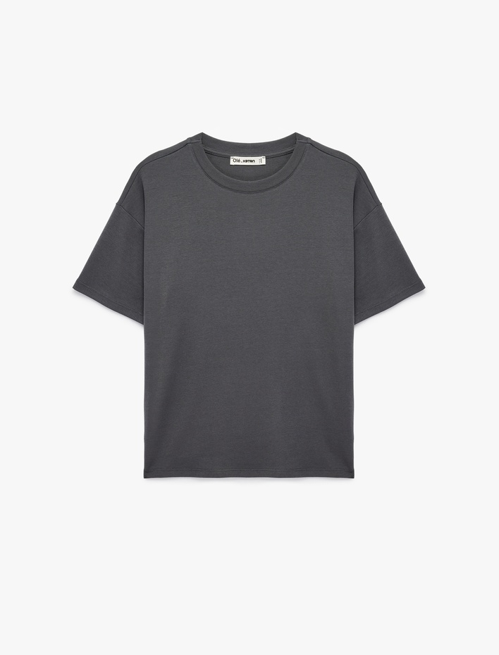 Kısa Kollu Bisiklet Yaka Modal Karışımlı Basic Oversize Tişört Sepete Ekle