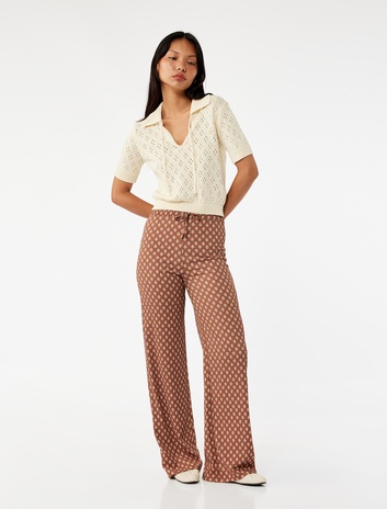 Yüksek Bel Bürümcük Baskılı Geniş Paça Pantolon Bürümcük