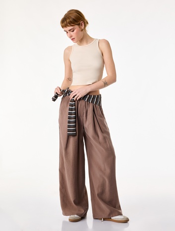 { "id": "8684848316077", "name": "Beli Bağcıklı Viskon Karışımlı Geniş Paça Pantolon", "taxonomy":["OLE","OLE","TEENAGE","WOVEN BOTTOMS","TROUSERS"], "currency": "TRY", "unit_price": 1499.99 , "unit_sale_price": 1499.99 , "url": "https://www.koton.com/beli-bagcikli-viskon-karisimli-genis-paca-pantolon-kahve-cizgili-4144178/", "stock": 14, "color": "KAHVERENGİ ÇİZGİLİ", "size": "38", "product_image_url": "https://ktnimg2.mncdn.com/products/2026/04/13/3210862/b1027d4b-2d40-4095-a9db-2b73d79ba9c8_size870x1142.jpg" }