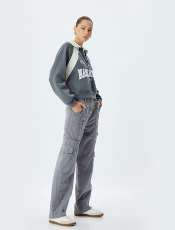 Kargo Pantolon Beli Lastikli Cep Detaylı Pamuklu