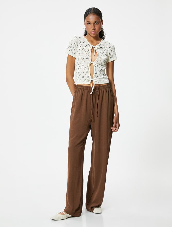 Keten Karışımlı Pantolon Geniş Paça Bağlama Detaylı