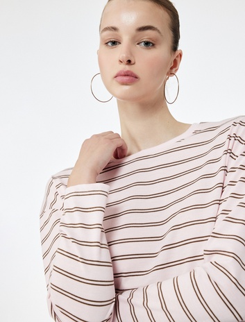 Uzun Kollu Bisiklet Yaka Çizgili Tişört Sepete Ekle