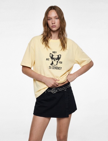 Kısa Kollu Bisiklet Yaka Fiyonklu Arkası Baskılı Oversize Tişört Sepete Ekle