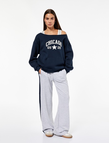 Uzun Kollu Bisiklet Yaka Üç İplik Şardonlu Baskılı Oversize Sweatshirt Sepete Ekle