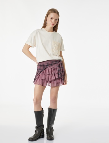Nakış Detaylı Kısa Kollu Cepli Bisiklet Yaka Pamuklu Tişört Sepete Ekle