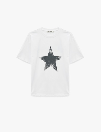 Arkası Yıldız Baskılı Kısa Kollu Bisiklet Yaka Oversize Tişört Sepete Ekle