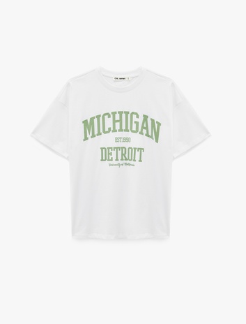 Kısa Kollu Bisiklet Yaka Pamuklu Oversize Kolej Baskılı Tişört Sepete Ekle