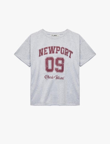 Kısa Kollu Kolej Baskılı Bisiklet Yaka Oversize Tişört Sepete Ekle