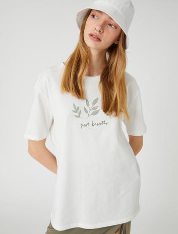 Slogan Baskılı Tişört Bisiklet Yaka Kısa Kollu