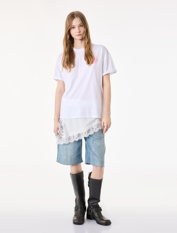 Fisto Dantel Detaylı Kısa Kollu Bisiklet Yaka Pamuklu Tişört Sepete Ekle