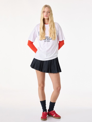 Kısa Kollu Bisiklet Yaka Baskılı Oversize Tişört Sepete Ekle