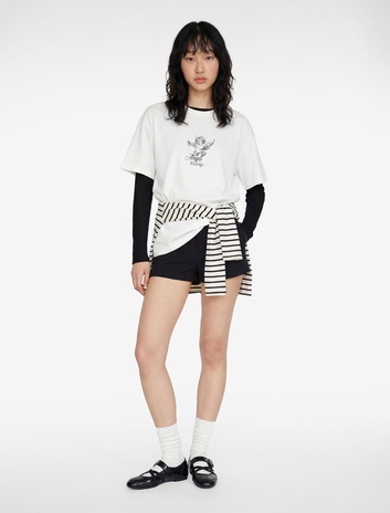 Siyah kısa kollu tişört modelleri ise blazer ceketlerle kurtarıcı kombinler oluşturuyor. Gündüzden geceye devam eden etkinliklerinizde bu tişörtlerden yardım alabilirsiniz. Gündüz sneakerlarla kullandığınız kombini, akşam saatlerinde topuklularla güncelleyerek günün değişen ritmine ayak uydurabilirsiniz.