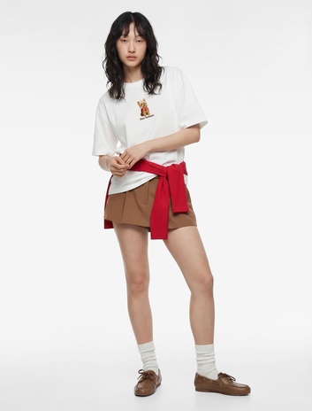 Kısa Kollu Bisiklet Yaka Köpek Nakışlı Pamuklu Oversize Tişört Sepete Ekle