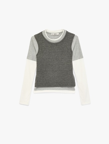Slim Fit Uzun Kollu Renk Bloklu Bisiklet Yaka Tişört Sepete Ekle